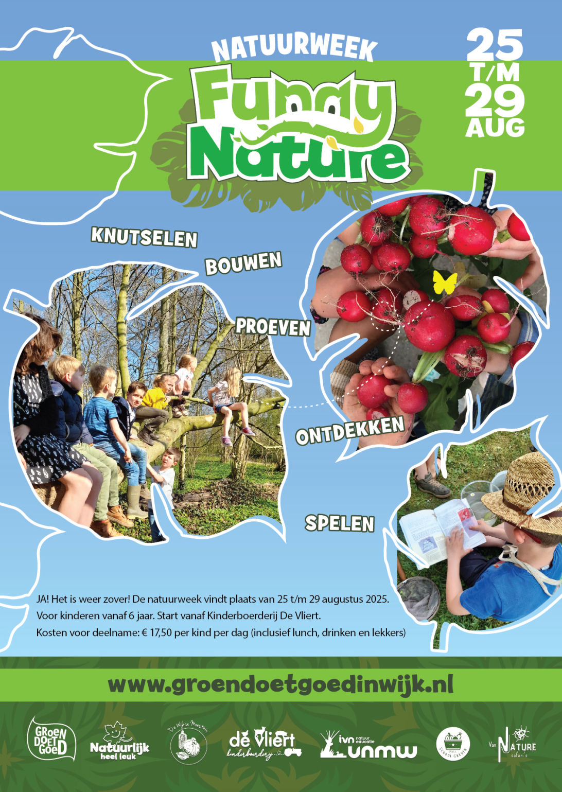 Ook deze zomer kon je weer lekker komen spelen, ontdekken, bouwen, proeven en knutselen. In de laatste week van de zomervakantie organiseerden we weer de Natuurweek Funny Nature bij Kinderboerderij De Vliert.